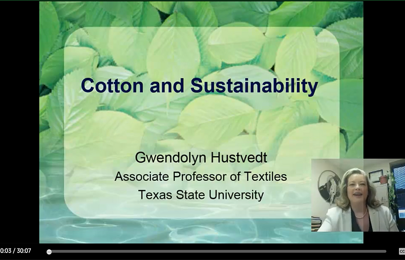 I created this short presentation about cotton and sustainability to present to students in my courses that do not have a primarily textiles focus. I will be sharing this presentation, as I have for several years now, with students in the UT-Austin Interior Design program.  In this 30 minute presentation, I examine organic agriculture, genetic modification, climate change, water systems and technology from a scientific and common sense approach.
