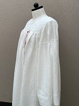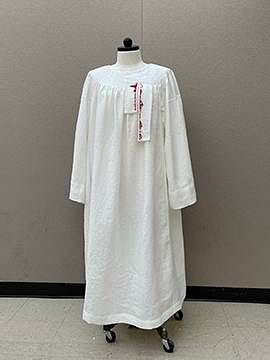 The shift, worn for millennia as an interior layer between expensive and precious exterior garments and the body, also represents the human figure. Textiles, especially garments, have an important place in the death and grieving process (Ayling-Smith. 2019 8 ). The type of garments worn in death vary widely from community to community (Davidson, 2016 9 ) and in the 20th century, a time of wealth and luxury, the choice of street rather than bed clothes also signifies our increased distance from the death bed. During the COVID-19 Pandemic, for many families this distance was entire, as their loved ones died in hospital isolation rather than in the comfort of their own bed and nightclothes.